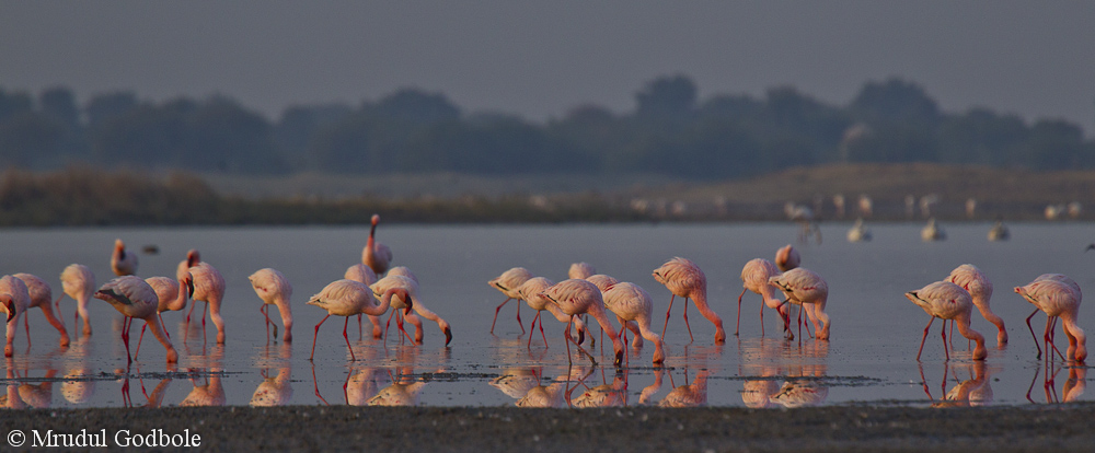The Gulf of Kachchh, the Gulf of Khambhat, the Great Rann of Kachchh and the Little Rann of Kachchh cover a vast area of coastal wetlands of Gujarat, making this part of the land incomparable to the rest of the country. Total population of wintering waterfowls in these areas has not been estimated, but it is expected to be in the range of millions. Sometimes, just a little less than a million flamingos nest in the Great Rann of Kachchh during their breeding season. Dr. Salim Ali recorded half a million Greater flamingos in a nesting colony in the well-known Flamingo City (Ang Bet) in the Great Rann of Kachchh in 1945. About 70,000 Lesser flamingos were documented in a nesting colony in the Little Rann of Kachchh during August 1998. Nal Sarovar Bird Sanctuary alone supports a population of one to two hundred thousand aquatic birds during peak winter months. Over 40,000 water birds are observed at Thol Bird Sanctuary in a day during peak winter period. Kachchh, a known district for wetlands, has numerous seasonal water bodies. Sample surveys and monitoring of these typical wetlands indicate that millions of water birds find a suitable home in this area. The wetlands in the Little Rann of Kachchh support 82,000 water birds during the winter of 1998, proving beyond doubt that a large number of water birds visit this area every year. There are hundreds of such wetlands in Saurashtra peninsula too.