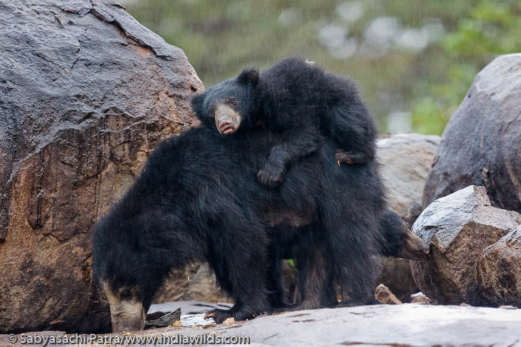 He has also mentioned that the sloth bear has a very interesting manner of raiding honeycombs. The sloth bear climbs a tree and in the cover of darkness knocks off one bee hive to the ground and then descends and eats it. the bees are handicapped by the darkness, and instead of following their nest, tend to concentrate round the place where it originally hung. It is common for a tree to contain a number of bees nests, and I have known a bear return night after night, dealing with only one nest at a time. He goes on to offer an explanation No doubt his long hair is a valuable protection, but all the same it would seem as if the little folk were sufficiently formidable to deter the bear from dealing with all the nests at one time.