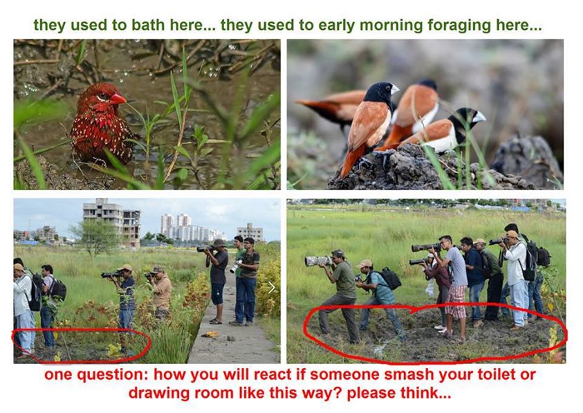 The location is already shrinking and habitat is diminishing, facing local extinction- thanks to the real estate boom. Yes, the plots are sold; you can see some infrastructure in the picture itself. Last year, there was an active movement to restrict posting photos of breeding species, especially the munias ( red/white rumped/chestnut/black headed etc ) in some of the bird group forum in facebook. But the menace is back. People are posting there "close up"s almost everyday. And this is the attempt to show how they are getting the shots :sad:. Poor munias :(