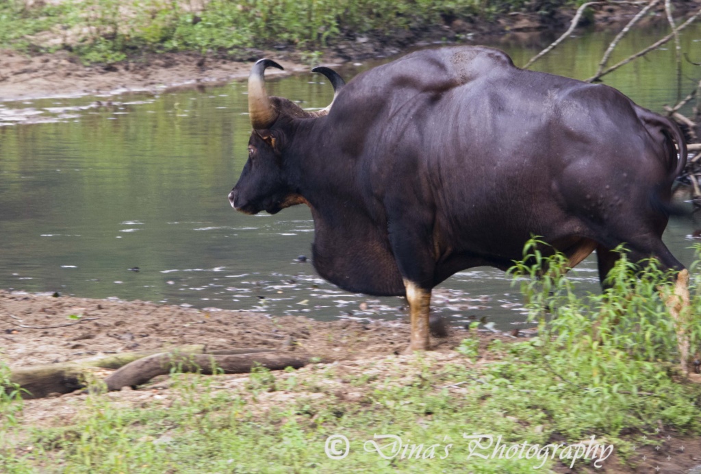 Huge Gaur - Alpha male of the herd crossing the forest stream. Stunned by the size of this beast.