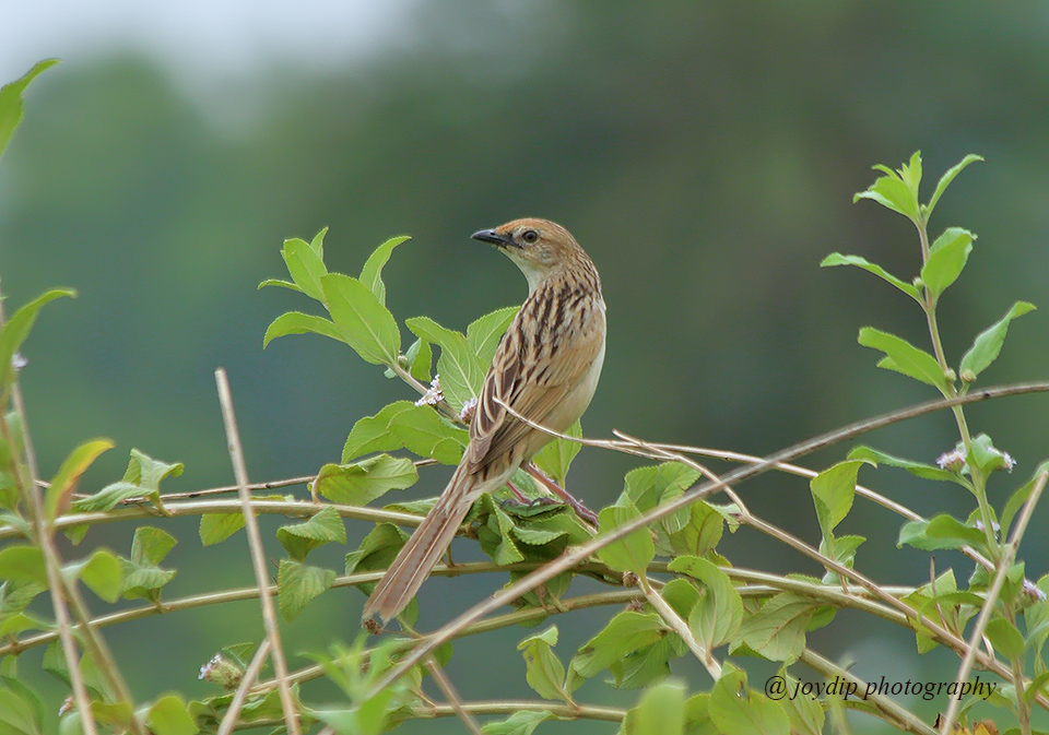 It's Globally threatened species. Commonly seen at tall grassland with bushes and paddy-fields . Size is smaller then Striated Grassbird ( 19-20 cm ) , stout bill , short and broad tail .Feathers of upperparts and wings have broad buff fringes . Upperparts grayer-brown and underparts white in fresh plumage . Photo taken from Bosipota , Hooghly , West Bengal , India . Canon 700d with Canon 70-300 mm IS USM - f/8 , 1/350 sec. , ISO-250 , 300 mm .
